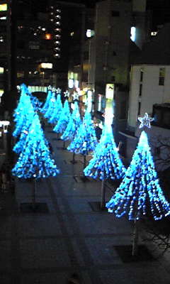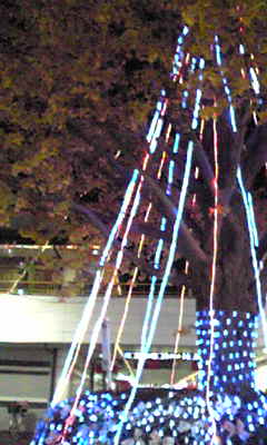 家の近くの商店街の真ん中にある、イチョウのイルミネーション